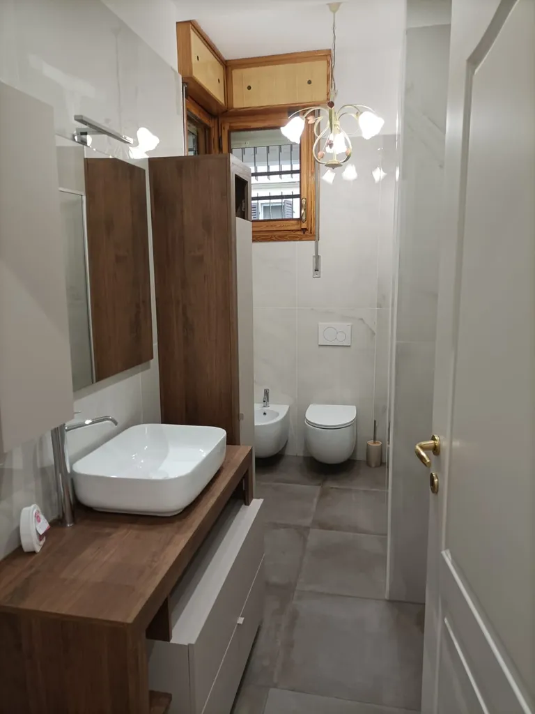Zona centralissima comoda a tutti i servizi, appartamento completamente ristrutturato (mai abitato prima d'ora) e arredato di nuovo con ampia zona esterna esclusiva e doppio ingresso (uno dal condominio ed uno indipendente).