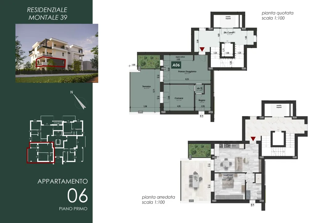 Rif. CAP394/13 - MONTALE (Conad): NOSTRA ESCLUSIVA Appartamento n. 06 di 70 mq comm. li posto al piano primo, ingresso su soggiorno pranzo, angolo cottura, camera matrimoniale, ripostiglio/lavanderia e bagno. Ampia terrazza e giardino pensile. Garage e posto auto compreso nel prezzo di acquisto. CLASSE A4 NZEB, capitolato di pregio, finiture personalizzabili. Consegna fine 2026. euro 265000.