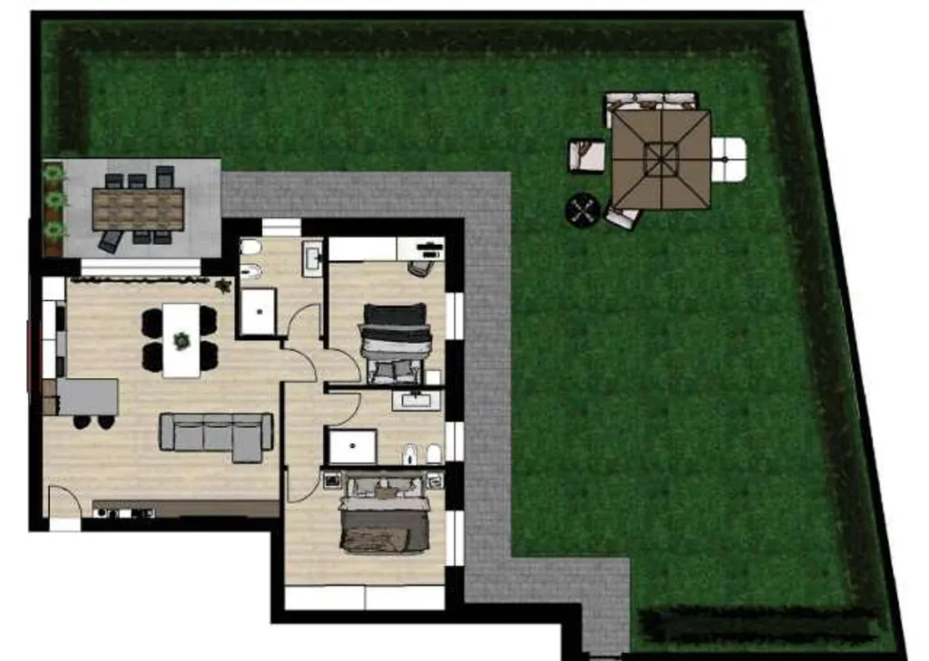 Rif. V001173 - Maranello - Nuova Lottizzazione - Prenotiamo appartamento indipendente in palazzina signorile composto da: ampia sala con angolo cottura, 2 camere, 2 bagni, terrazzo, giardino privato più garage e posto auto privato esclusivo.