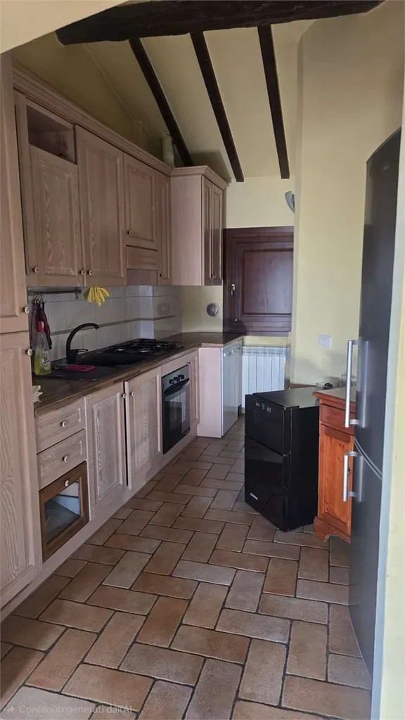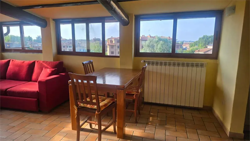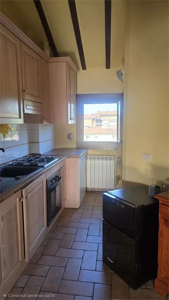 Rif. V001197 - MARANELLO CENTRALISSIMO , in palazzina storica , appartamento mansardato completamente ristrutturato nel 2015 al 4° (terzo su ammezzato) ed ultimo piano senza ascensore, attualmente ben affittato (scadenza contratto primavera 2027) si compone di ingresso in luminoso soggiorno con camino e vetrate con vista sul centro di Maranello e sulle montagne, cucinotto aperto sul soggiorno completamente attrezzato e arredato, disimpegno notte con 1 grande camera matrimoniale, 1 camera 3/4 e bel bagno finestrato . Porta blindata, aria condizionata, impianti a norma.
