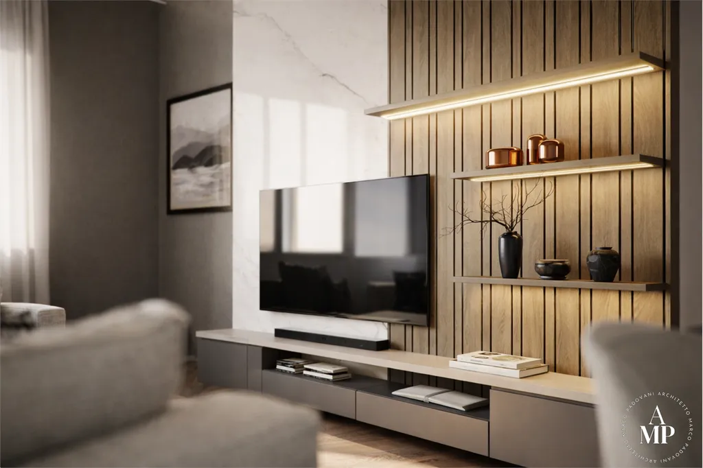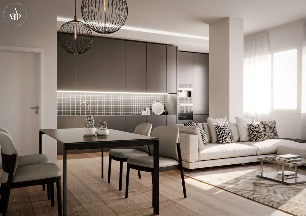 La ristrutturazione ha interessato lintera unità, con riorganizzazione degli spazi, impianti nuovi, serramenti ad alta efficienza e cappotto interno volti a garantire un impatto decisivo sulle prestazioni energetiche.