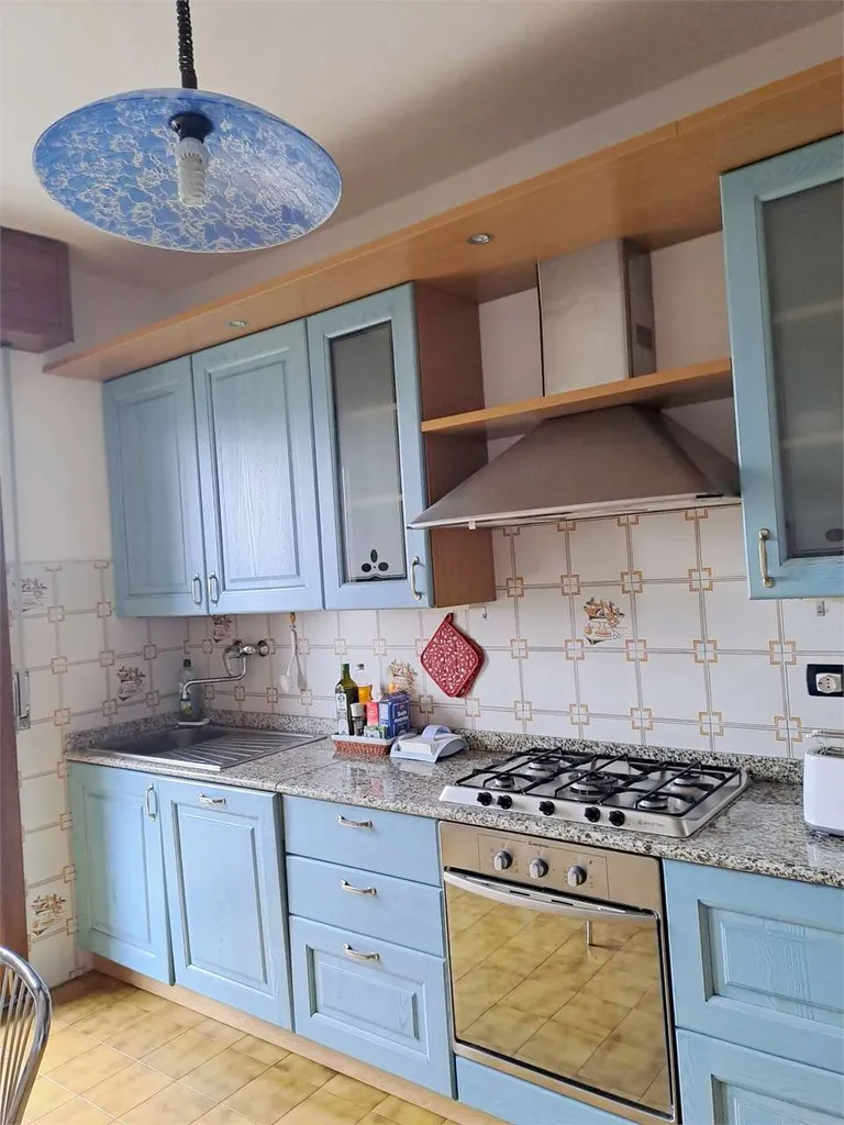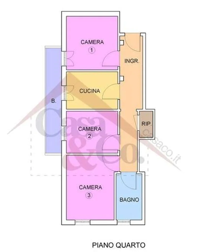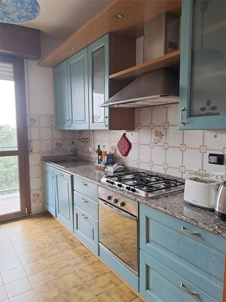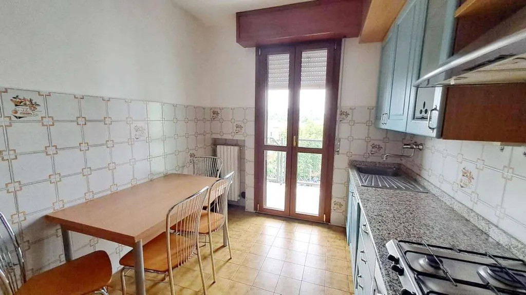 L'appartamento si trova al 4° P. con ascensore ed composto da: ingresso, cucina abitabile con accesso al balcone, tre camere matrimoniali ad uso singolo, bagno e ripostiglio.