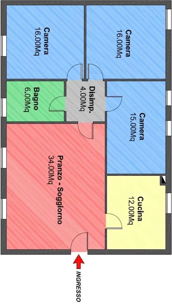 Labitazione si distingue per gli spazi ampi e ben distribuiti: lingresso conduce a un luminoso soggiorno, ideale come zona living, affiancato da una cucina separata e abitabile. Un comodo disimpegno accompagna alla zona notte, composta da tre camere da letto matrimoniali e un bagno.