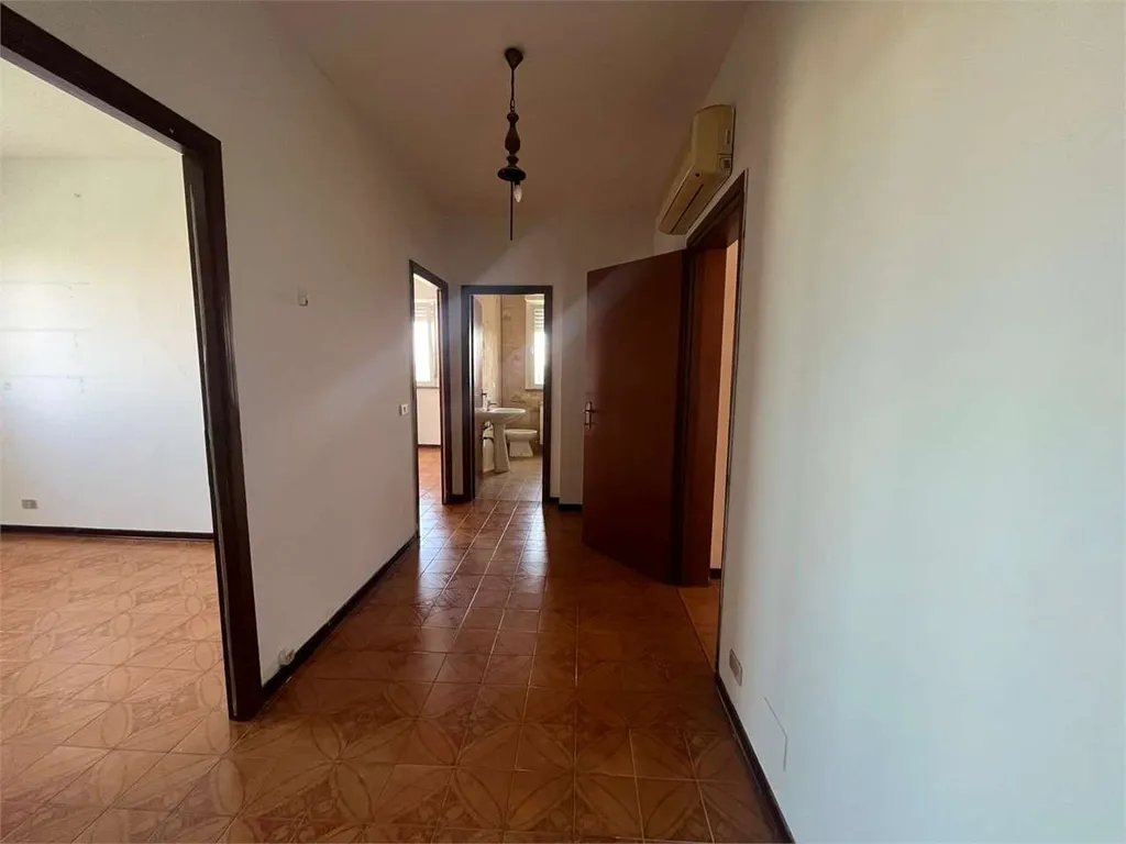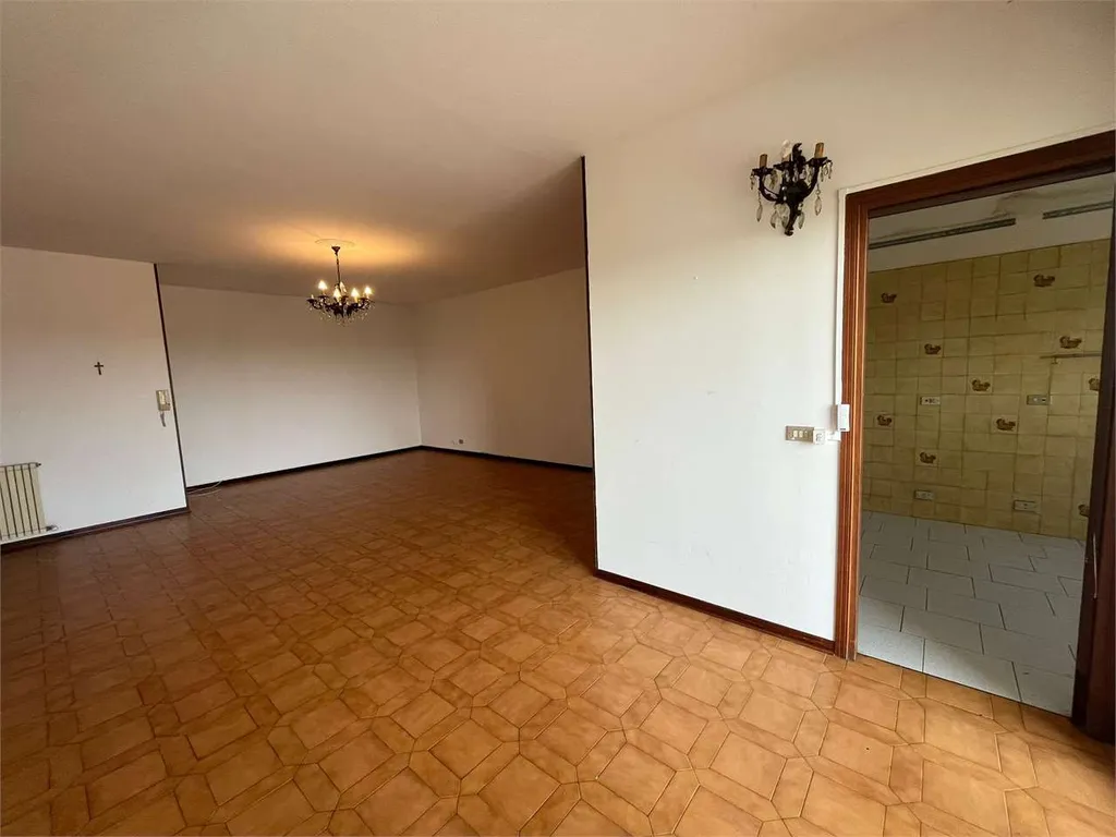Ingresso nel grande soggiorno con balcone, cucina semi abitabile, disimpegno notte, due camere matrimoniali, una camera singola e due bagni.