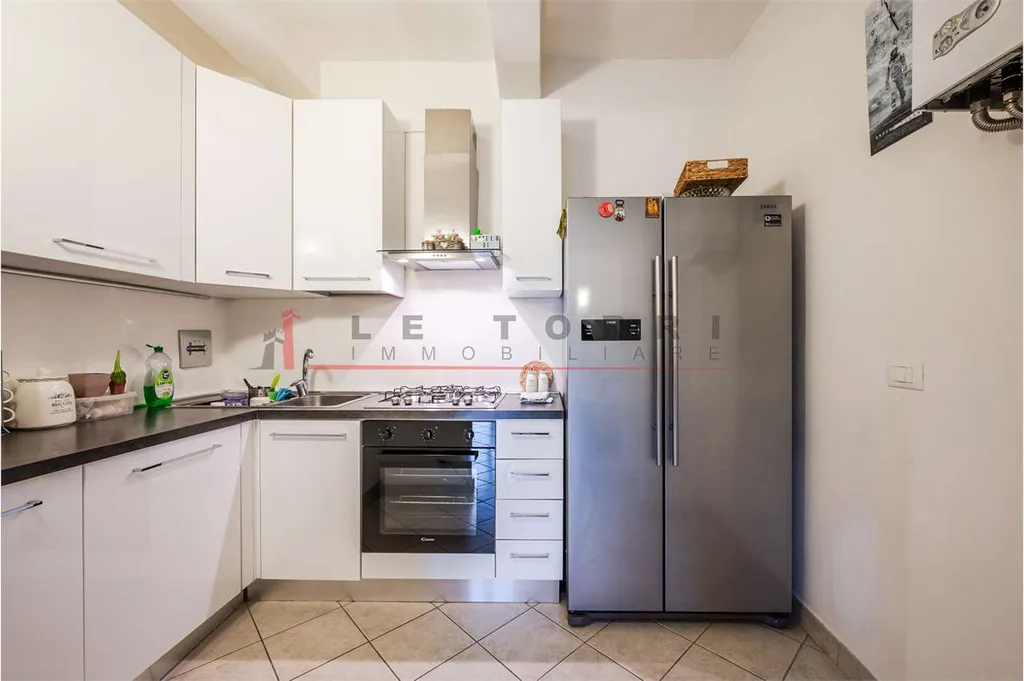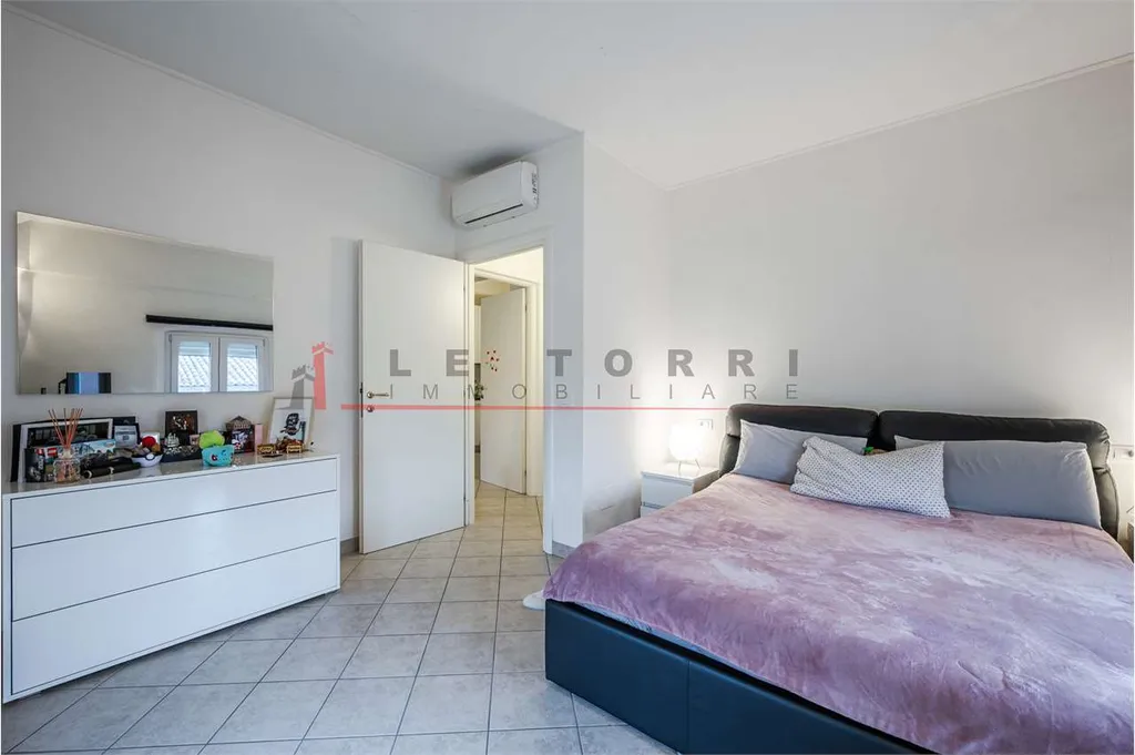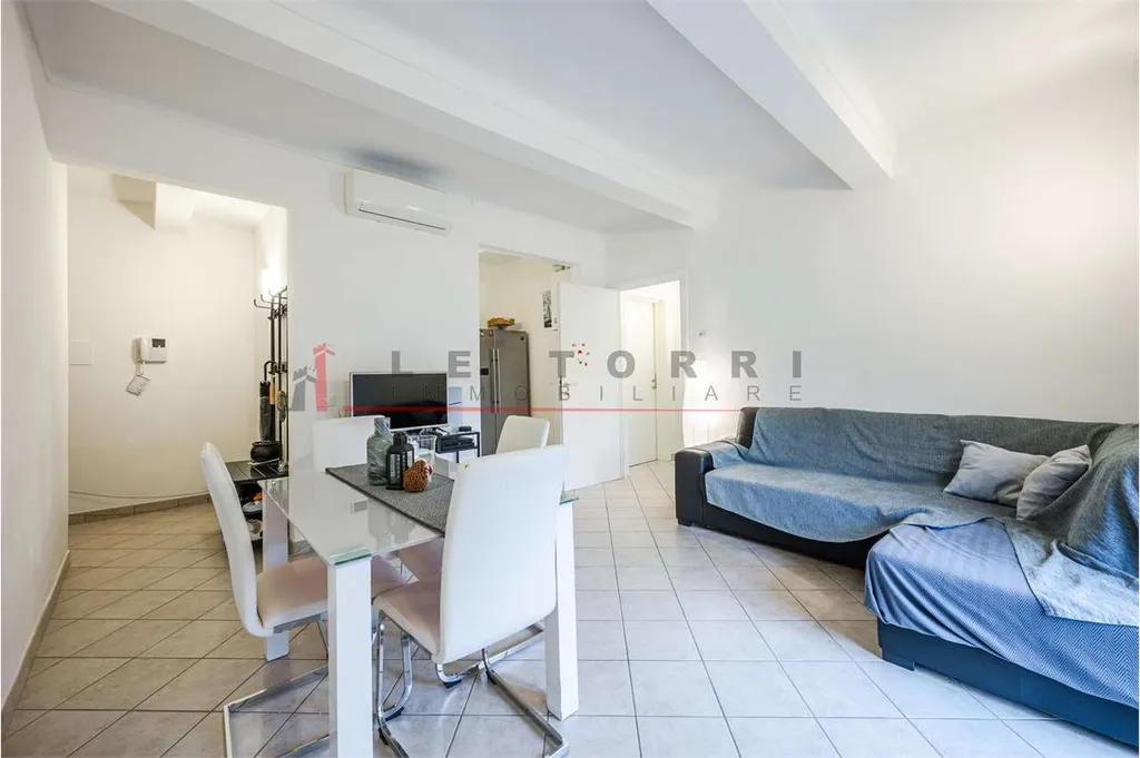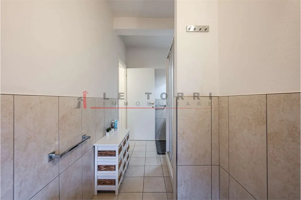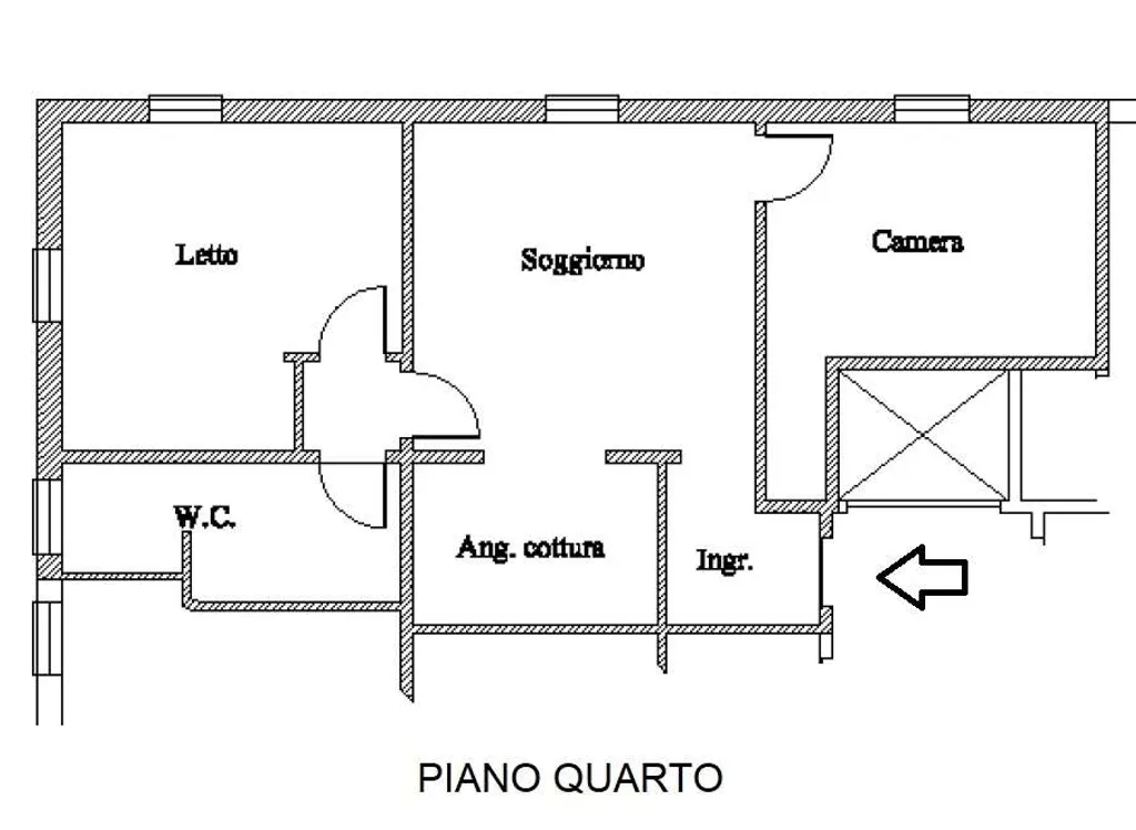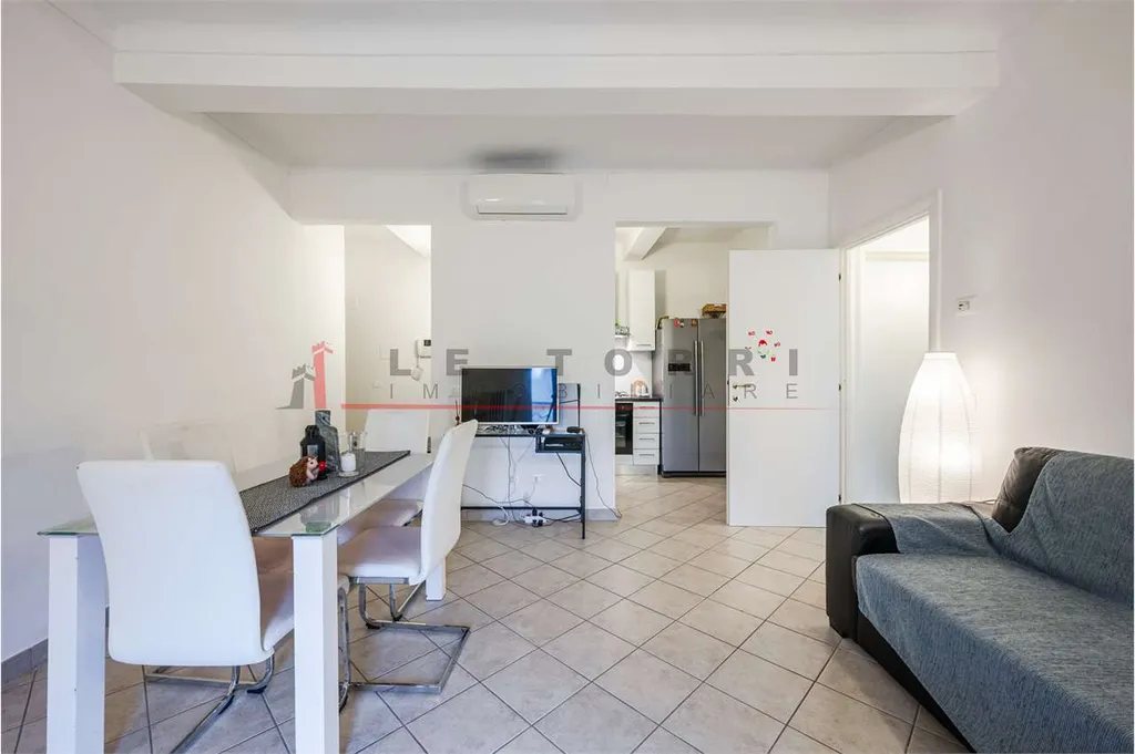 L'appartamento è così distribuito: ingresso, luminoso soggiorno con nicchia per angolo cucina, camera singola/studio con ripostiglio, disimpegno notte, camera matrimoniale, bagno.