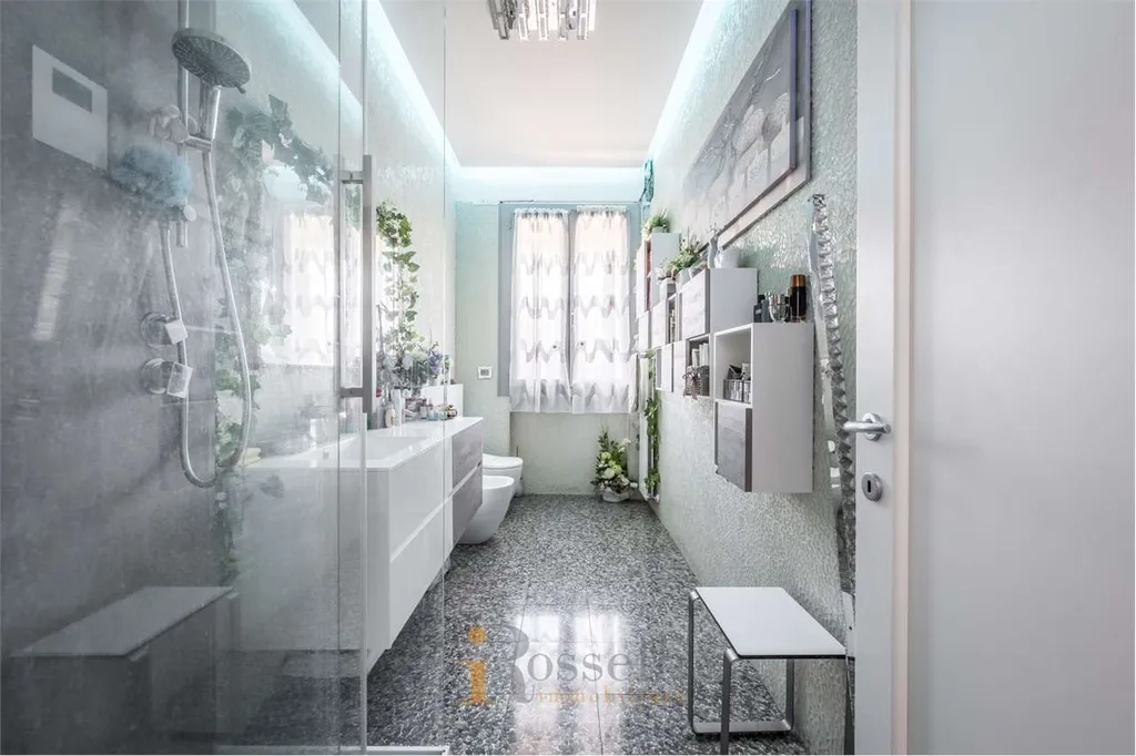 Rif. GPR10 - In condominio signorile oggetto di riqualificazione superbonus con cappotto, appartamento al sesto piano: ingresso, soggiorno, cucina abitabile, disimpegno notte, camera con ripostiglio/cabina armadi, camera matrimoniale, bagno. Ampio balcone, Vista panoramica. Soffitta, cantina e garage.