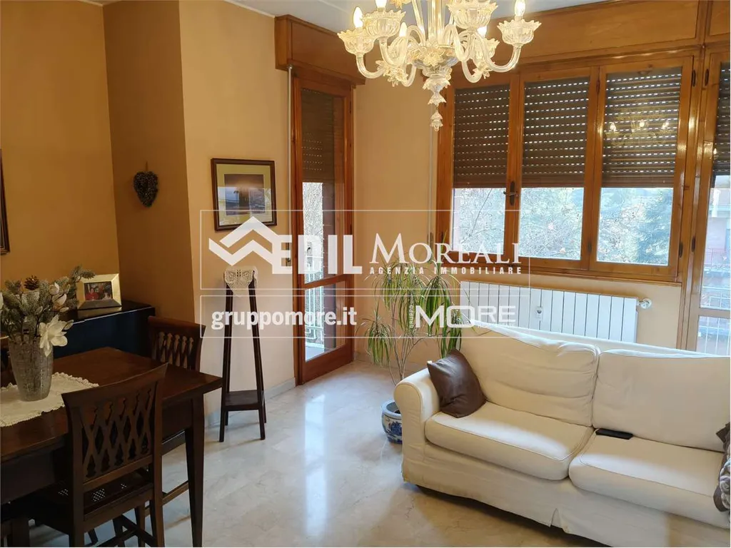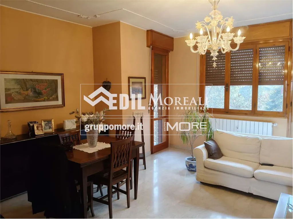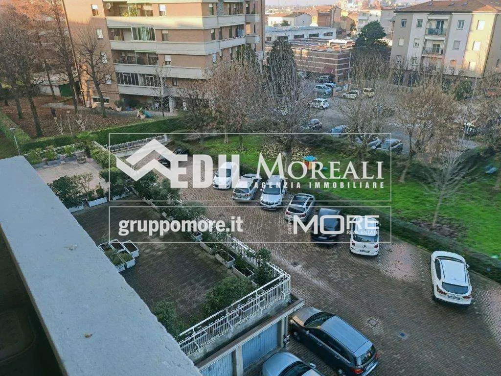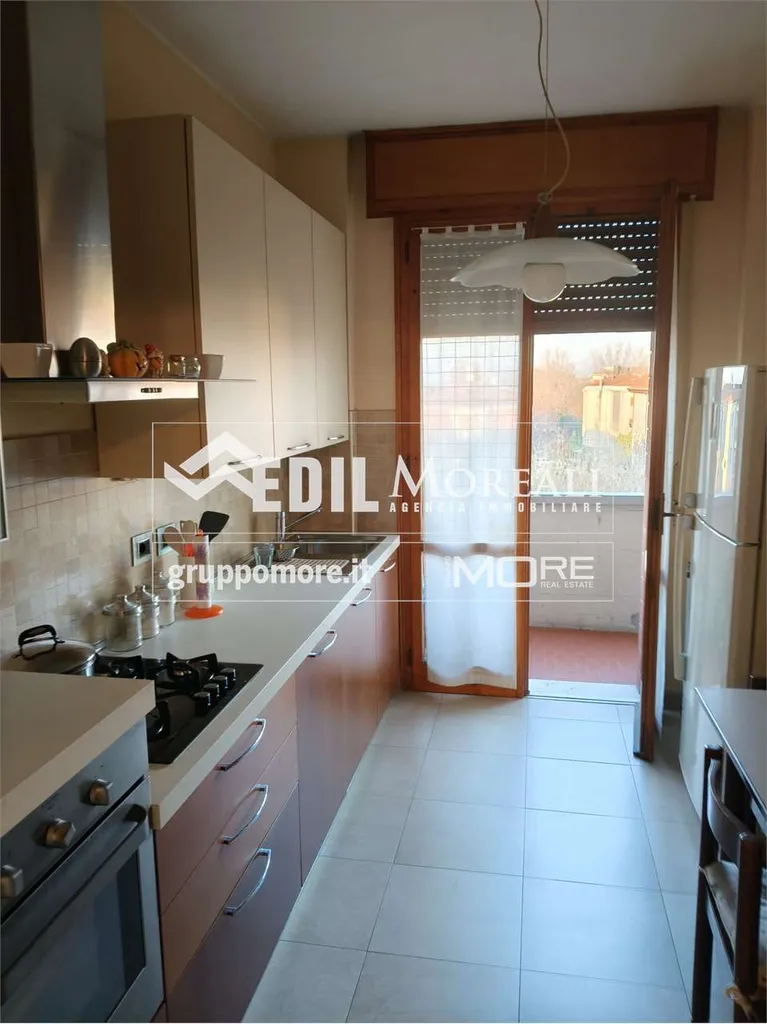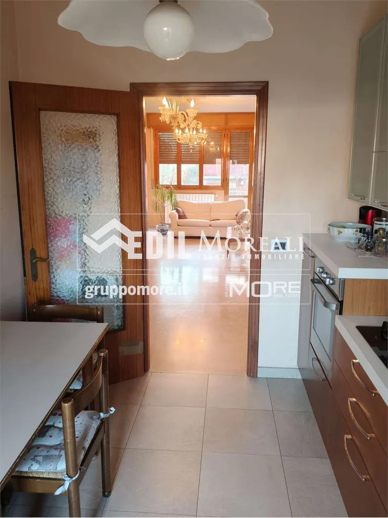 L'appartamento è silenzioso, estremamente luminoso, gode di doppio affaccio ed è così disposto: ampio ingresso, cucina abitabile con balcone, sala grande con accesso a secondo balcone, dis. notte, due camere da letto matrimoniali e un comodo bagno. La proprietà è completata da un garage al piano terra per auto media e da una soffitta.