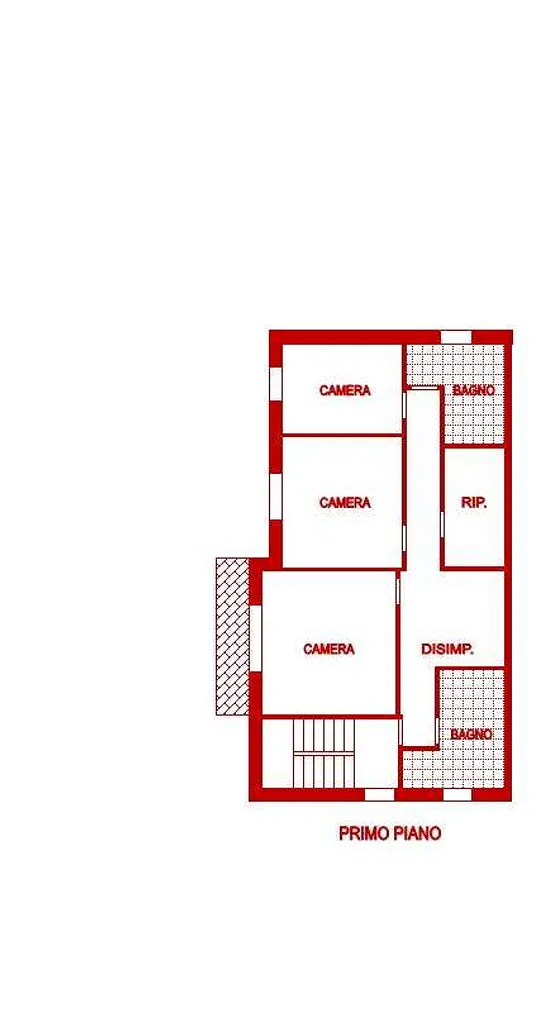 1° Piano - spazioso ingresso con possibilità di armadiatura, 2 camere matrimoniali, 1 singola, 2 bagni, e ripostiglio.