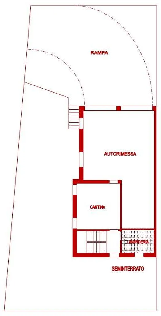 Piano seminterrato - Taverna, Lavanderia, cantina e ampia autorimessa.
