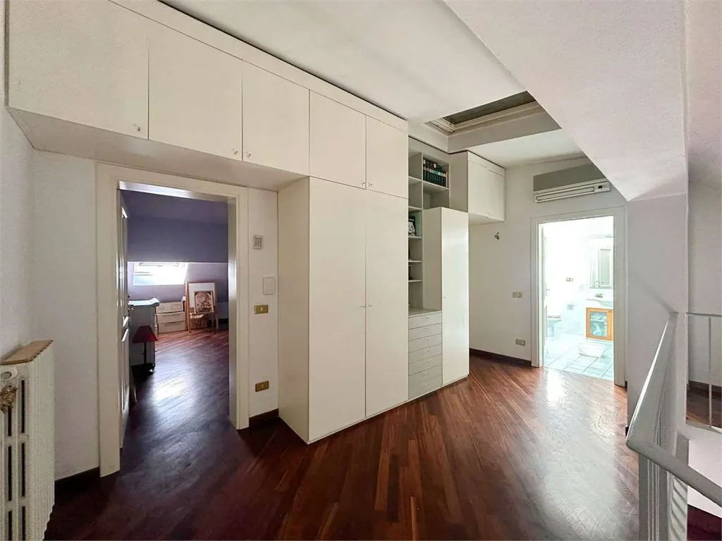 Questo appartamento si distingue per la sua luminosità ed ampiezza ed è composto da ingresso al P.2 in ampio e luminoso soggiorno con due finestre e camino;