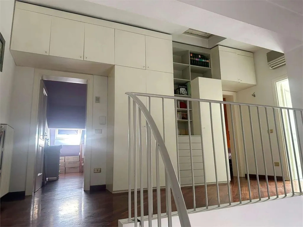 Salendo attraverso una splendida e scenografica scala elicoidale raggiungiamo il reparto notte composto da grande soppalco con armadiatura a muro, due camere matrimoniali e grande bagno con vasca e doccia.