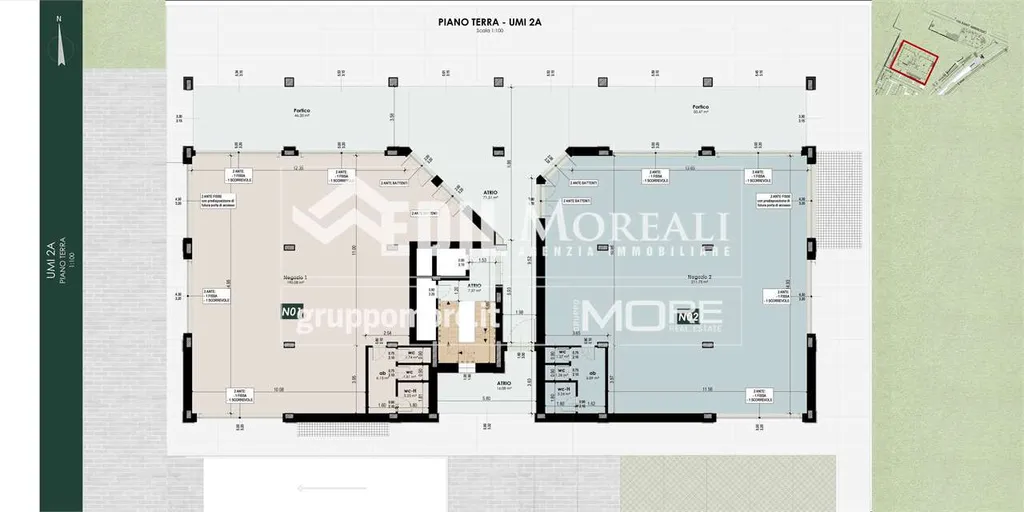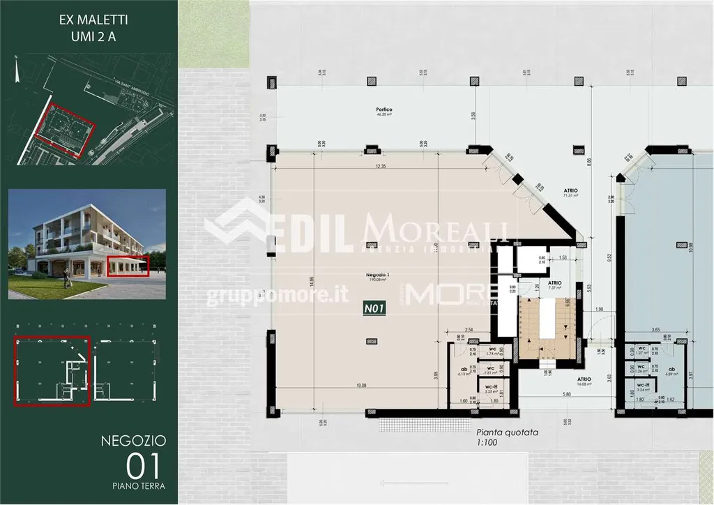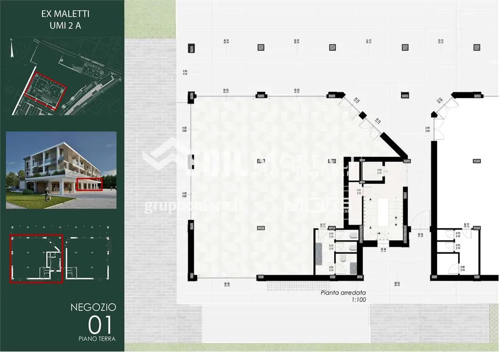 Rif. MO860-UMI2A(N01) - MO860-UMI2A(N01). Nostra esclusiva, Casinalbo, Borgo San Luigi - Ex Salumificio Maletti, in angolo verde comodo a tutti i servizi prossima realizzazione di comparto residenziale (Classe Energetica A4 - NZEB) composto da nr. 9 palazzine e due ville indipendenti. Al piano terra della palazzina UMI2A vendesi negozio "N01" di 235 mq. con ampie vetrate e affaccio su piazza.