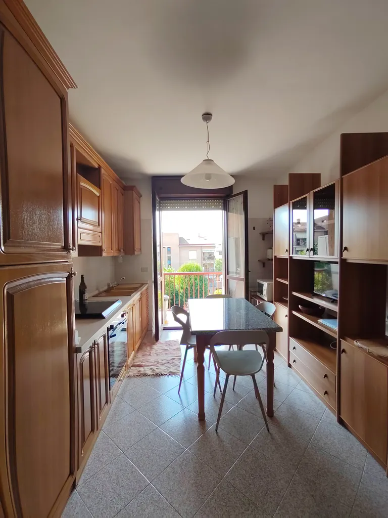 Cucina completamente attrezzata con forno, lavastoviglie, caldaia nuova e accesso al balcone;
