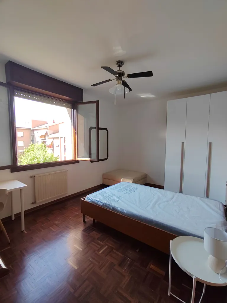 In appartamento nelle immediate adiacenze di Policlinico e zona universitaria Unimore raggiungibili comodamente a piedi in 10 minuti: affittasi stanza luminosa e accogliente con letto matrimoniale e scrivania per studiare; no coppie, no animali.
