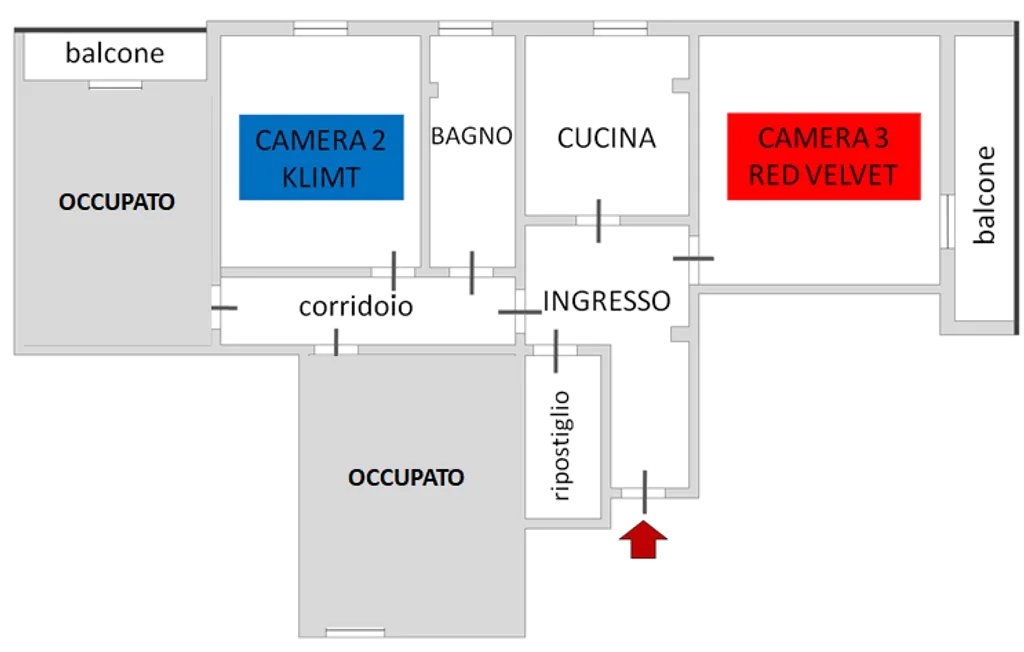 - Camera RED VELVET con aria condizionata: 460,00/mese tutto incluso
