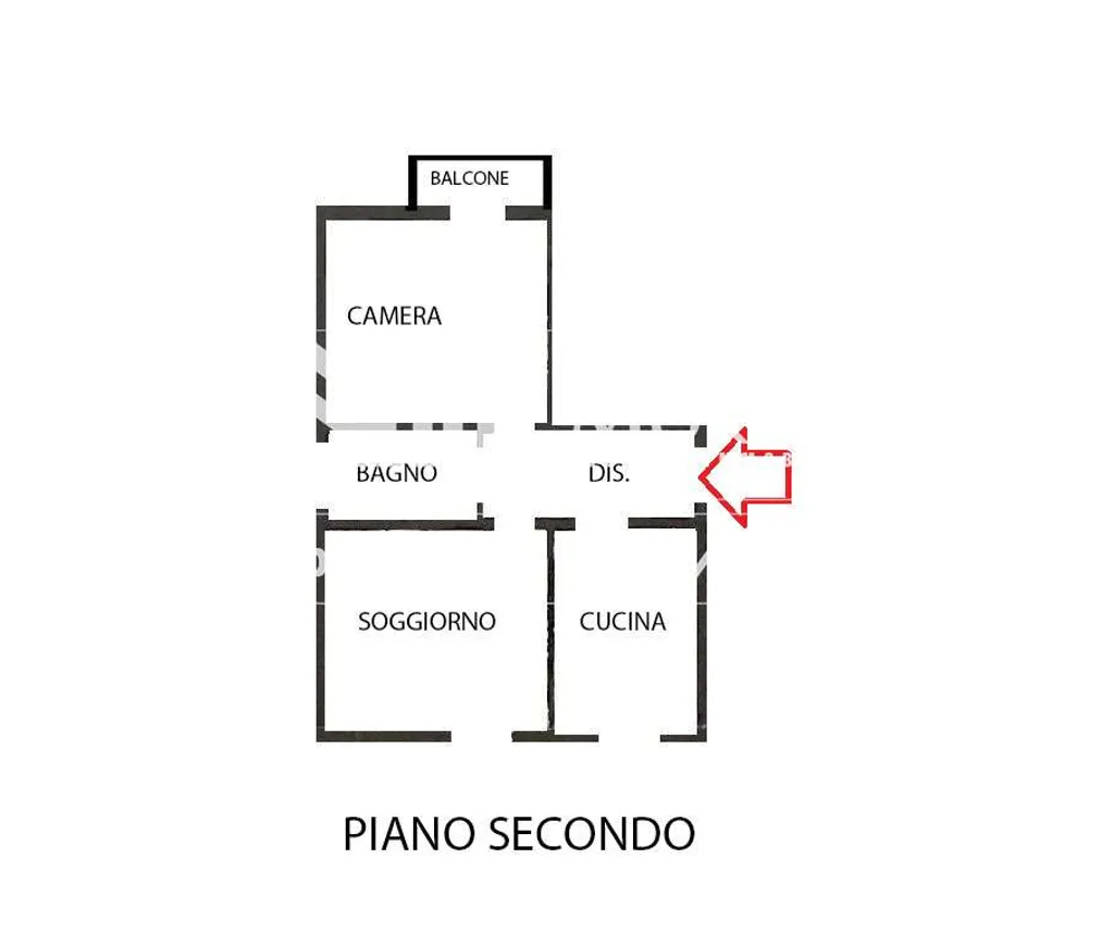App.to così disposto: ingresso, soggiorno, cucina abitabile, una camera matrimoniale molto grande e un bagno con doccia. Completano la proprietà due solai al p.4 sottotetto e un garage al piano terra per auto medio/piccola.