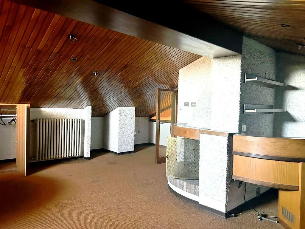 Rif. 5215 - OSPIZIO Appartamento su due livelli, al terzo - quarto ed ultimo piano di una piccola palazzina in mattoni faccia a vista, servita da ascensore, ed edificata negli anni 80, così composto: un ingresso, una cucina ABITABILE, un salone, entrambe con balcone, due bagni, e due camere matrimoniali, la scala interna di collegamento raggiunge il piano superiore sottotetto, adibita a mansarda con un caratteristico camino e altro bagno. Al piano terra ampia autorimessa di oltre 30 mq. Possibilità di acquistare l' immobile ristrutturato. Euro 229.000