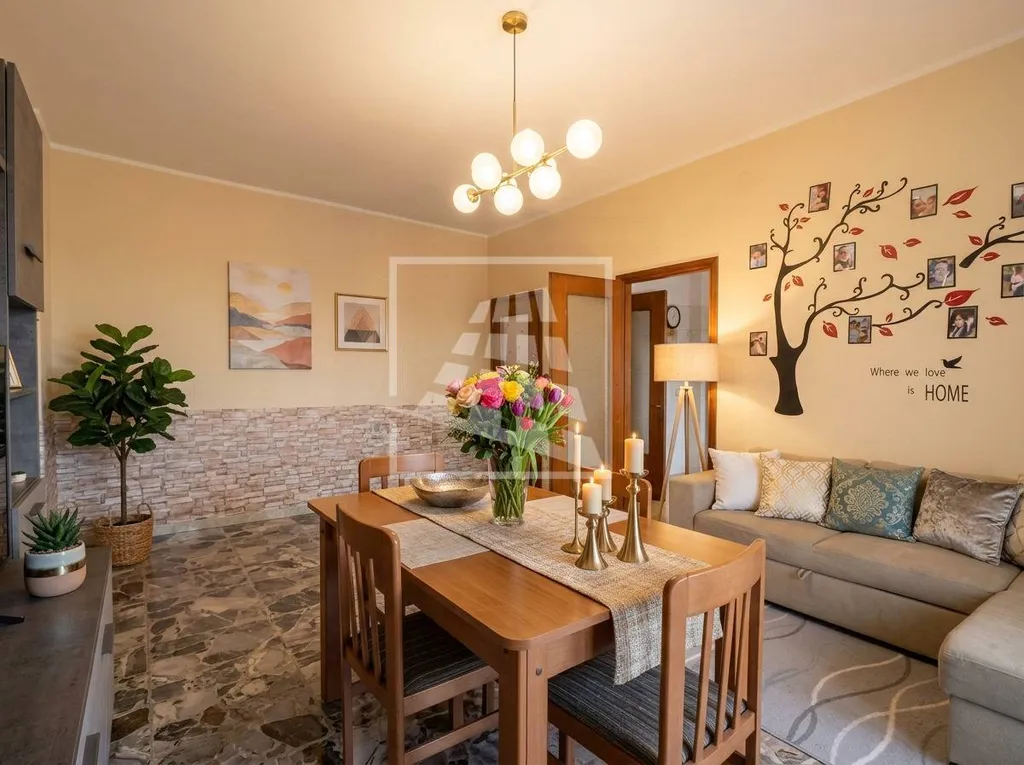 Lingresso si apre su una zona giorno ben distribuita, composta da un ampio soggiorno con balcone e una cucina abitabile, anchessa con accesso diretto allo sfogo esterno tramite porta-finestra.