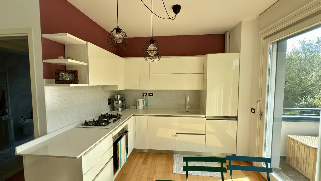 Rif. R4270 - In zona residenziale esclusiva e tranquilla, proponiamo in vendita un elegante trilocale con doppia esposizione, caratterizzato da una straordinaria luminosità. L'appartamento si apre su un ampio soggiorno con cucina a vista, le grande vetrate che affacciano sulla splendida loggia, consentono ai raggi solari di irradiare costantemente la zona living con luce naturale. La vista è verde e libera, non ostruita da altre abitazioni. Dal disimpegno notte si accede alla camera da letto matrimoniale, dotata di balcone privato molto funzionale. La seconda camera da letto è ad uso singolo, anche utilizzabile come studio. In fine il bagno, spazioso e rifinito con eleganti materiali. Numerose sono le dotazioni di questo appartamento: dal riscladamento a pavimento, alle tapparelle motorizzate, aria condizionata, pavimenti in rovere chiaro etc.. Da segnalare l'ottima classe energetica: B, per farti vivere ad altissimi standard abitativi. Completano la proprietà una cantina e un garage.