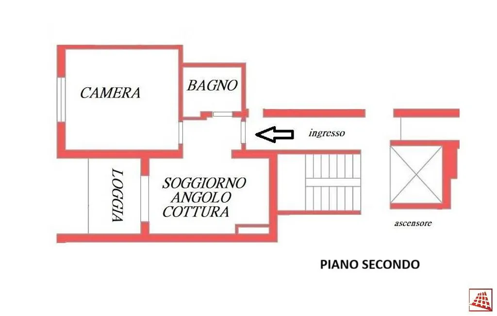 Appartamento arredato di circa 50 mq, situato al secondo piano di una palazzina servita da doppio ascensore.