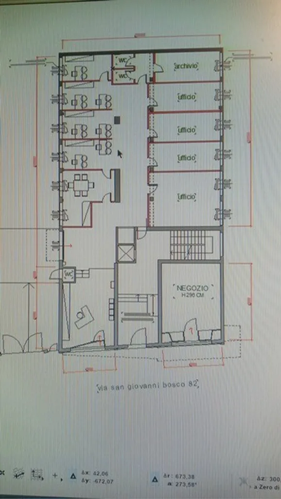 Rif. CAP481 - MUSICISTI/ VIA S. GIOVANNI BOSCO. UFFICIO di oltre 200 mq con ingresso/vetrina fronte strada attualmente open space ma con possibilità di divisioni interne personalizzabili fino a 10/15 di spazi uso ufficio, servizi igienici (planimetria a titolo esemplificativo), magazzino mq 40 al piano interrato, area privata adiacente di mq 50. Disponibile. Disponibilità di altro locale adiacente di mq 40 ad uso negozio con ingresso/vetrina fronte strada. euro 190000