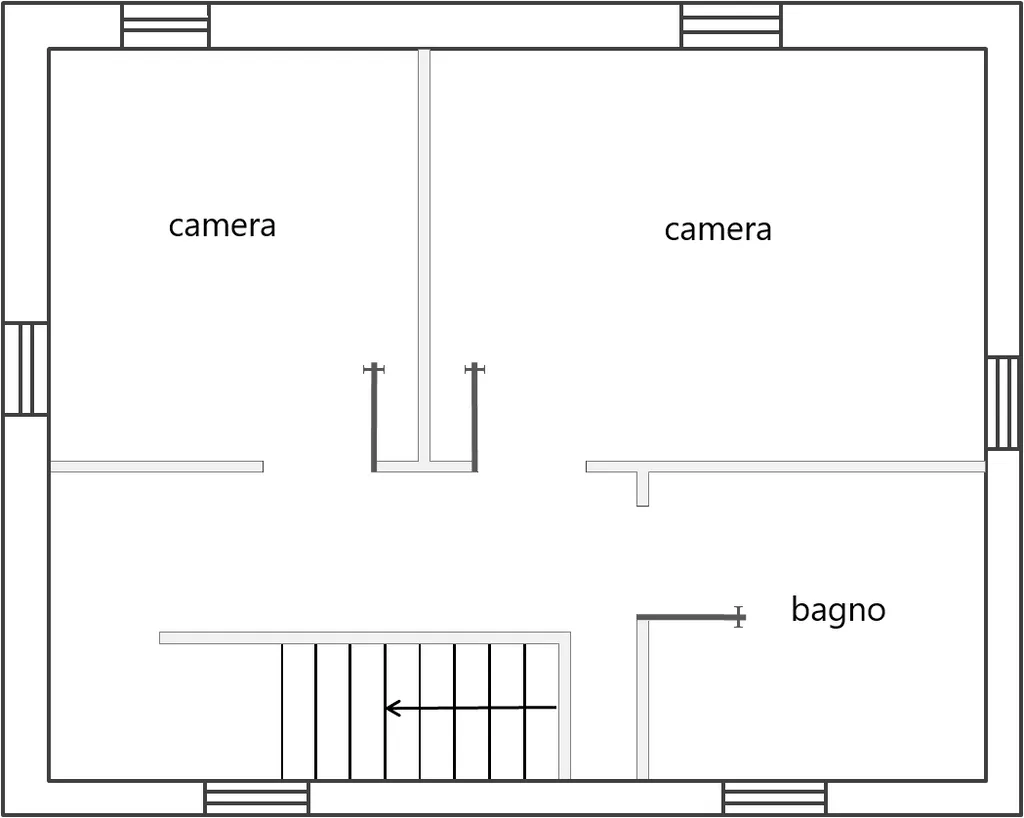 Al primo piano troviamo due camere matrimoniali e bagno.