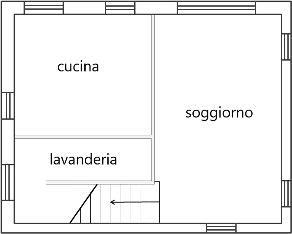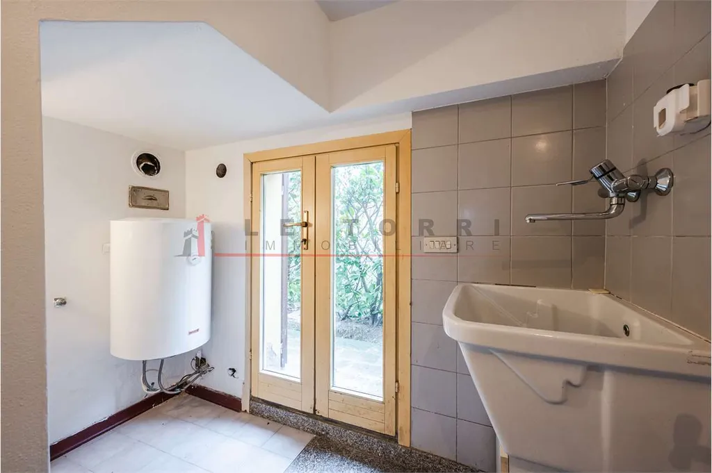 Ingresso dal giardino privato, limmobile si apre su un'accogliente zona soggiorno, cucina abitabile, lavanderia.