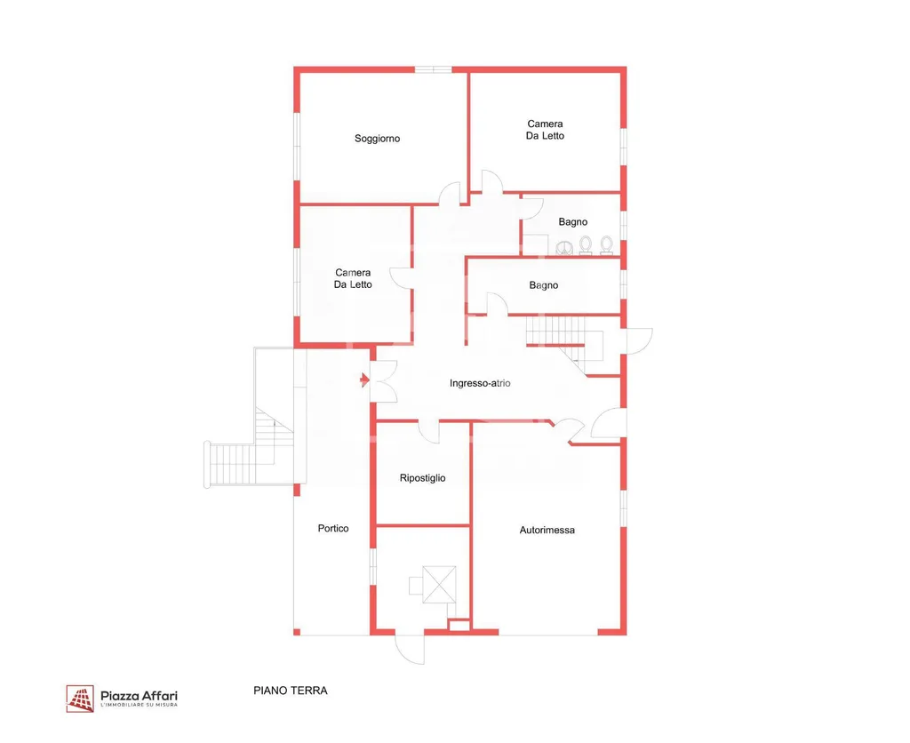 Al piano terra si trovano un comodo portico di 22 mq che conduce all'ingresso, locale caldaia, cantine, deposito, ripostiglio e bagno con lavanderia; ( a questo livello è possibile realizzare un appartamento indipendente in superficie utile composto da sala con zona cottura 2 camere da letto e 2 bagni )
