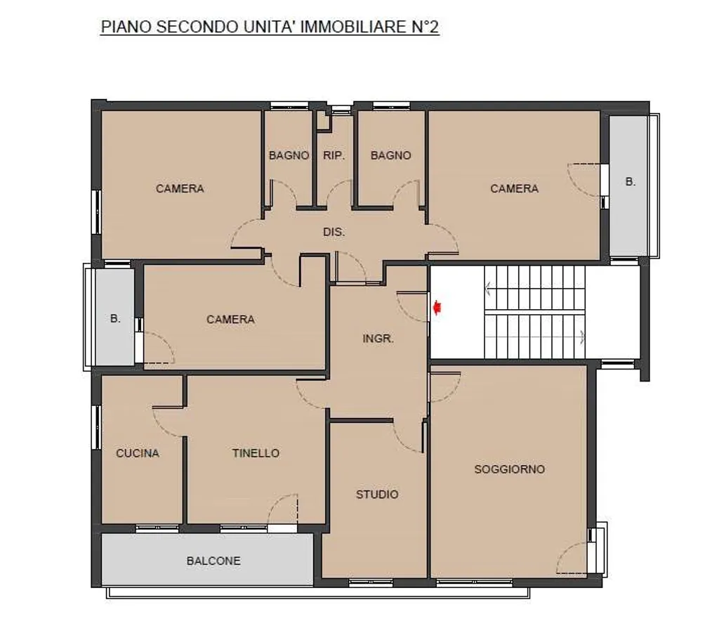 I due appartamenti che misurano circa 180 mq. ognuno, al primo e secondo piano, identici tra loro, sono così composti: ampio ingresso, soggiorno doppio, studio e cucina con tinello e balcone. La zona notte conta due camere da letto matrimoniali di cui con balcone, una camera singola con balcone, due bagni e un ripostiglio. A piano terra sono presenti due autorimesse, cantine, area lavanderia e possibilità di creare un locale hobby. Unampia soffitta al sottotetto completa la proprietà.