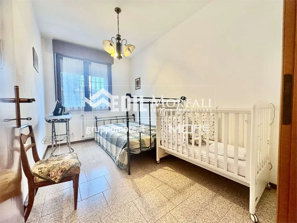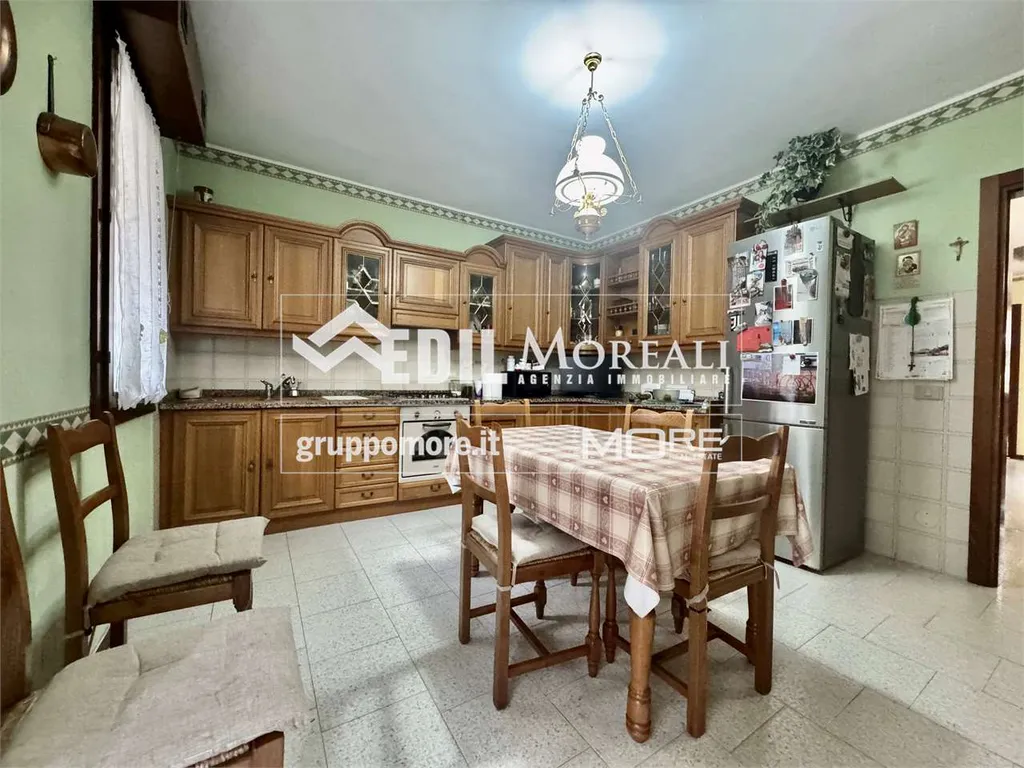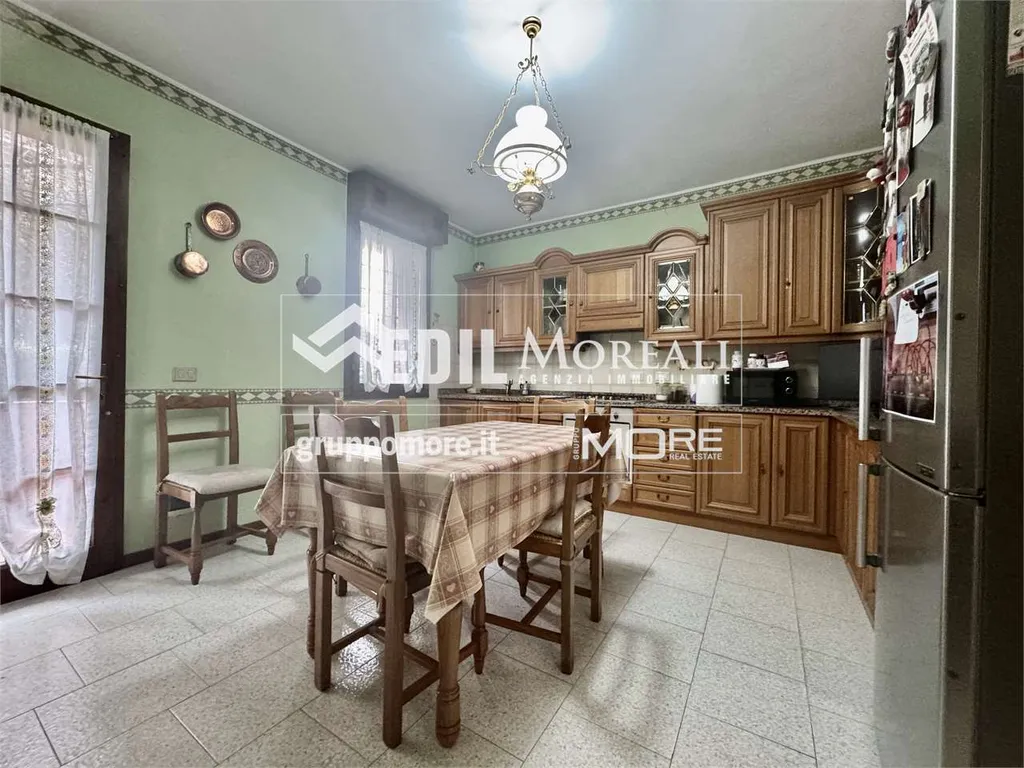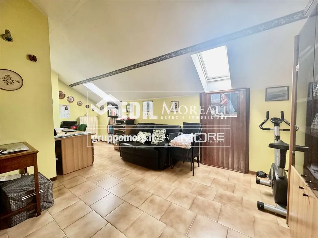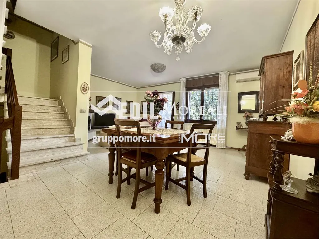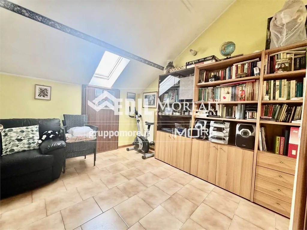 Villetta così composta; piano rialzato: ampio soggiorno con camino, una cucina abitabile e bagno; primo piano: una comoda zona notte con due camere matrimoniali e una camera singola, balcone e bagno; secondo piano: ampia zona open-space mansardata con lavanderia. Completa la proprietà un box auto privato e un'ampia cantina.