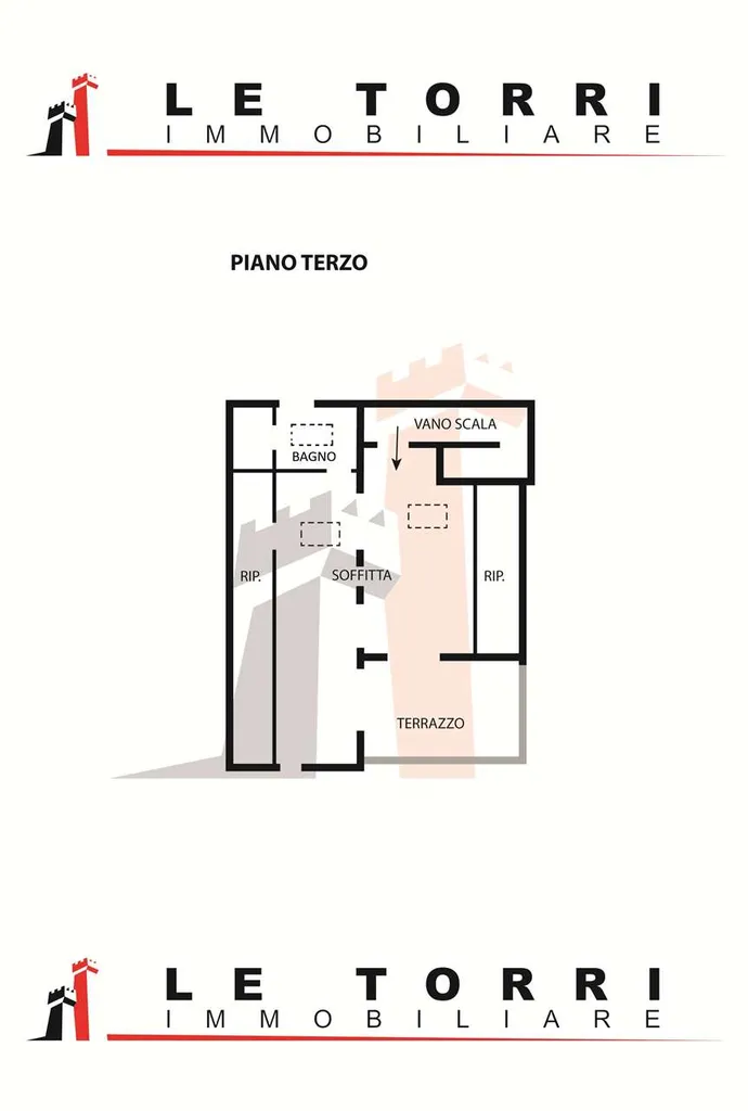Piano terzo - spaziosa soffitta mansardata con bagno.